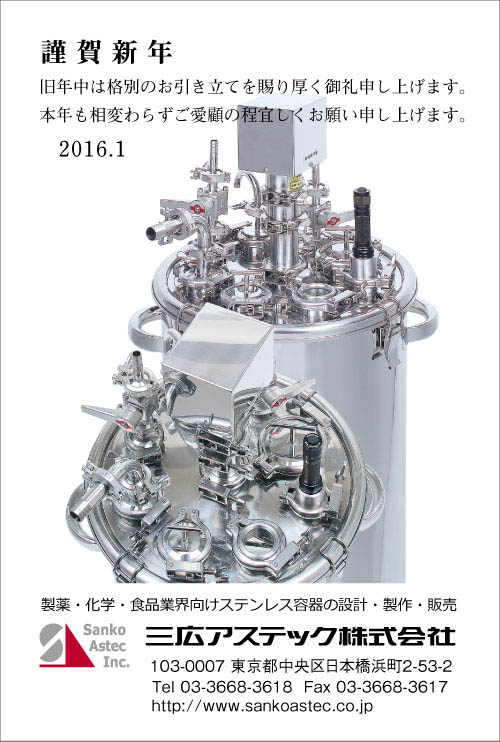 新たな一年が、皆様にとってより良き年となりますようお祈りしております。 2016年も、お客様のお役に立てますよう、社員一同努力していきます。 本年も変わらずご愛顧いただきますよう、よろしくお願い申し上げます。