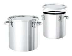 ガスケットに硬質PTFE(四フッ化エチレン樹脂)を使用した、クリップ密閉式のステンレス容器です。