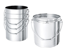 液体・粉体の一時保管に適した、蓋付の円筒型ステンレス容器です。