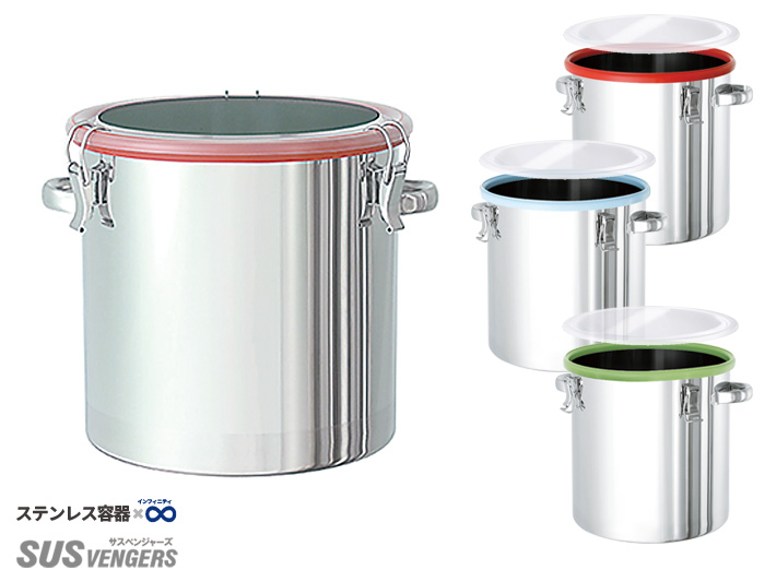 透明アクリル製の蓋とカラーガスケットを組み合わせた、高視認・高識別タイプの密閉ステンレス容器です。