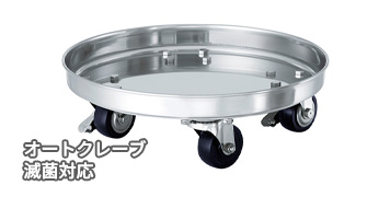 オートクレーブでの滅菌処理に対応した、ストレート型ステンレス容器専用の高耐熱容器運搬キャスター台車です。