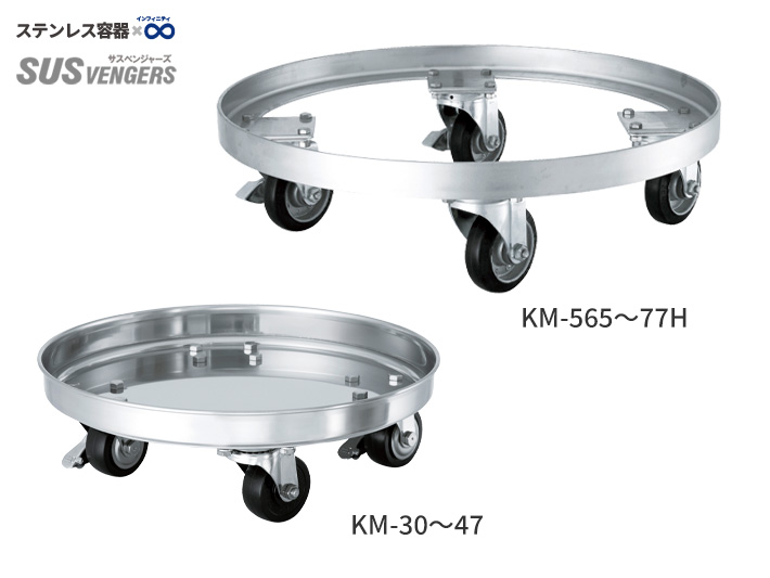 弊社ストレート型ステンレス容器に対応した、専用の容器運搬キャスター台車です。