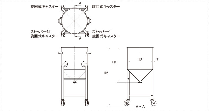 ・HTA脚付ホッパー容器は、受注生産品です。