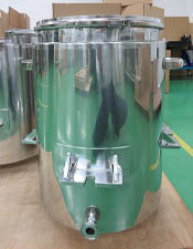 カスタマイズポイント:高さと容量の変更に対応し、蓋ヘルールを取付け可能。 ボールタップ弁FBT搭載で液面の自動調整を実現。 サニタリー温度計TAC取付による温度管理カスタム対応。