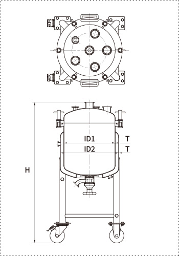 ジャケットによる内容液の加温・冷却と、ダイヤフラム式タンク底バルブによるデッドスペース最小設計が特長の、脚付フランジオープン式ステンレス加圧容器シリーズです。