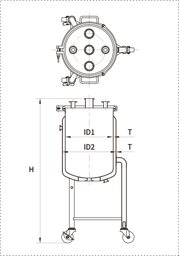 移動しやすいキャスター脚付で、密閉状態での加圧液送や加圧濾過など、さまざまなプロセスに対応します。